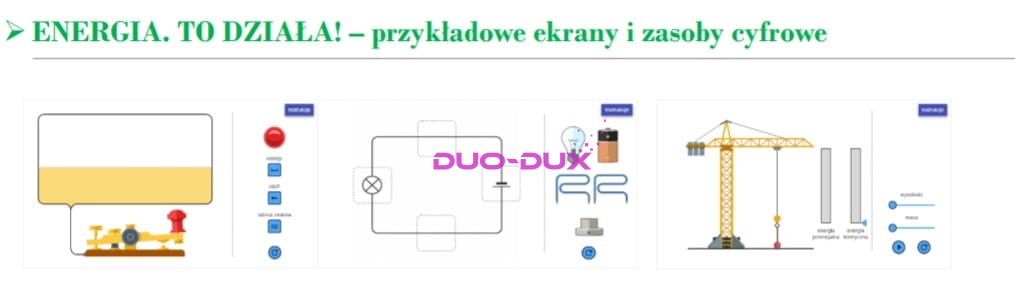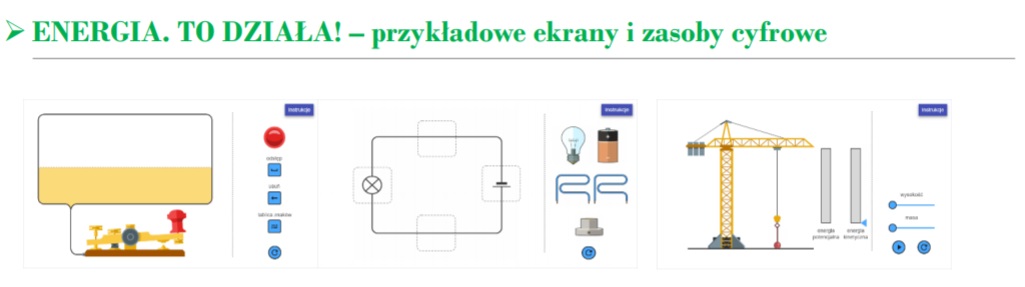 - rozbudowany przewodnik metodyczny pt. "Energia. To działa!" dla nauczyciela ze scenariuszami lekcji i działań badawczych, w wersji cyfrowej,