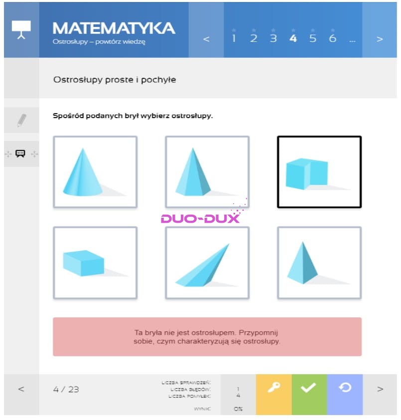– udostępniać uczniom lekcje typu "Sprawdź się", a po analizie wyników prowadzić wspólne zajęcia przy pomocy materiałów “Powtórz wiedzę”- wymagana licencja uczniowska