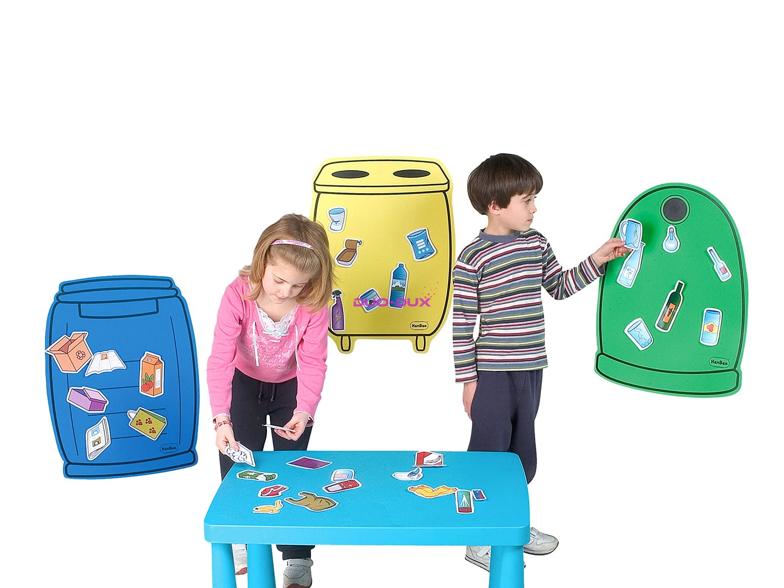 Umiem segregować Coraz więcej mówi się o segregowaniu śmieci, zauważa się zasadność uczenia dzieci zasad recyklingu i uświadamiania im roli tego procesu dla naszej planety. Gra "Sortuj swoje śmieci" może stać się doskonałym pretekstem do takich rozmów, a także przetestowania już zdobytej wiedzy. Zaproponujcie dzieciom żeby przyniosły z domu puste opakowania i zastanówcie się czy można ich ponownie użyć, a jeśli nie znajdziecie dla ich zastosowania, to czy możemy je segregować czy powinny się znaleźć w pojemniku z odpadami mieszanymi. Poinstruujcie dzieci jak segregować odpady i sprawdźcie nabytą wiedzę podczas ćwiczeń. Gra posiada aż 36 różnych elementów. Zadaniem dzieci powinno być ich odpowiednie posortowanie. Można poprosić dzieci żeby opisały skąd wzięły się odpady, czego są elementem, jakiego typu to odpad (papier, a może plastik). Gra może odbywać się w grupach, gdzie dzieci muszą zebrać odpowiednio wszystkie odpady papierowe, plastikowe i szklane. Można również poprosić aby każde z dzieci wzięło jeden z magnetycznych elementów i jak najdokładniej go opisało. Zalety : - obrazowe przedstawienie zagadnienia recyklingu, - rozwijanie słownictwa, W zestawie: - 3 magnetyczne pojemniki: żółty do plastików, zielony do szkła i niebieski do papieru o wym.: 62 x 46,5 x 2 cm , - 36 elementów do segregowania o długości od 7 do 16 cm, - 41 rzepów o śr. 2 cm, - całość zapakowana w plastikowe opakowanie. Produkt przeznaczony dla dzieci od 5 roku życia. Ostrzeżenie. Nieodpowiednie dla dzieci w wieku poniżej 3 lat. Produkt zawiera magnesy lub części magnetyczne - w przypadku połknięcia magnesów lub wprowadzenia ich do dróg oddechowych należy natychmiast zwrócić się o pomoc lekarską.