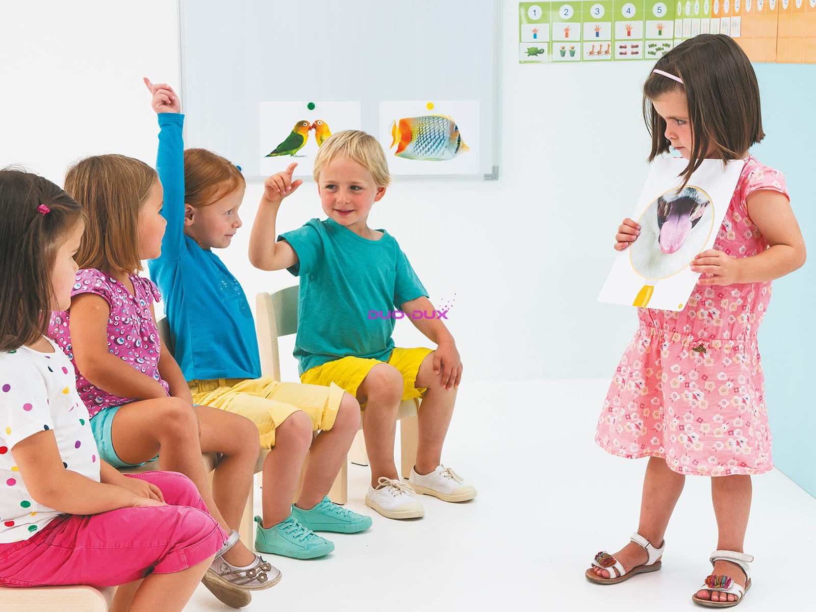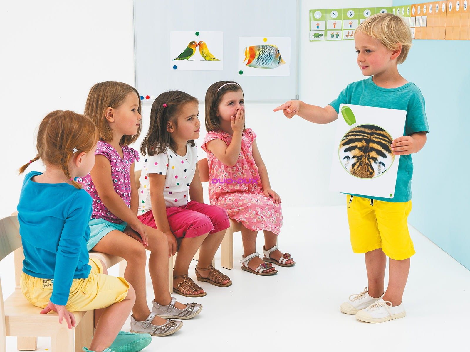 Królestwo zwierząt 8 zestawów 16 wielkoformatowych dwustronnych zdjęć pozwalających przyjrzeć się z bliska życiu zwierząt. Na zdjęciach pokazano nie tylko ich wygląd fizyczny, sposób przemieszczania się, dorastanie, reprodukcję, odżywiania się, zdrowie i higienę. Z przodu : fragment oglądanego przez lupę zwierzaka, na odwrocie: zdjęcie pozwalające jego zidentyfikowanie. Zalety: - wzbogacanie zasobu słownictwa, - rozwijanie umiejętności kojarzenia, logicznego myślenia, - doskonalenie percepcji wzrokowej. W zestawie: - 64 duże dwustronnie drukowane karty o wym.: 21 x 28,7 cm, - instrukcja. Produkt przeznaczony dla użytkowników od 3 roku życia.