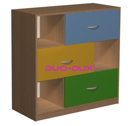 Szafka Primo 153 posiada 3 szerokie szuflady i 3 otwarte półki.