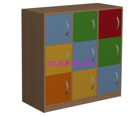 Szafka Primo 163 posiada 9 skrytek zamykanych osobnymi, jednoskrzydłowymi drzwiczkami.