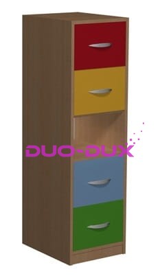 Szafka Primo 185 posiada 4 szuflady. Pomiędzy nimi 1 otwarta półka.