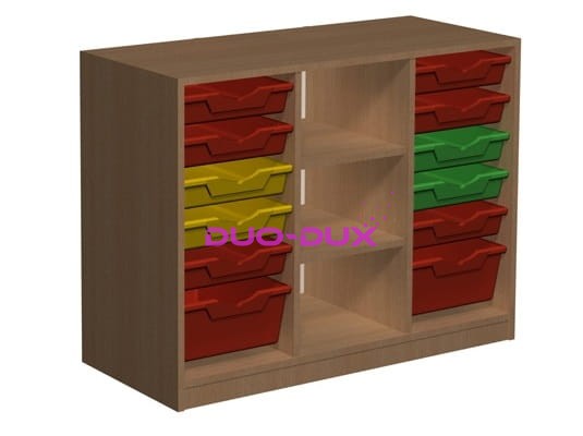 Po bokach 12 pojemników - 10 małych pojemników oraz 2 średnie.